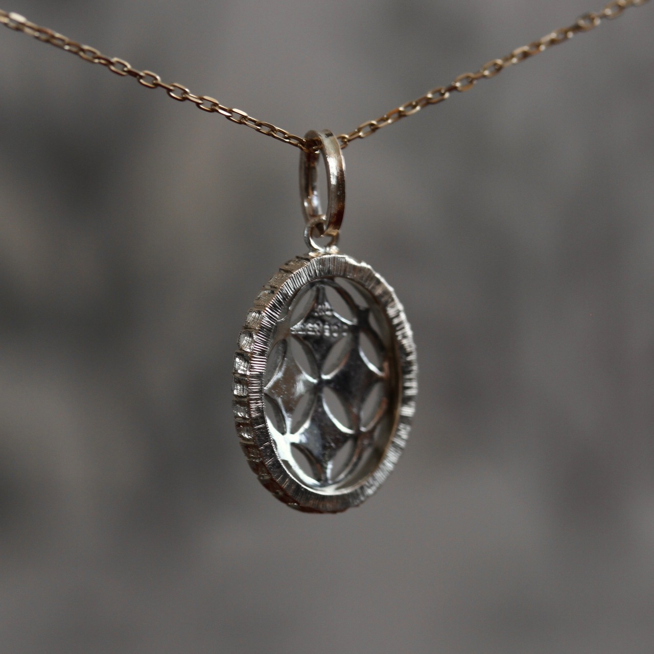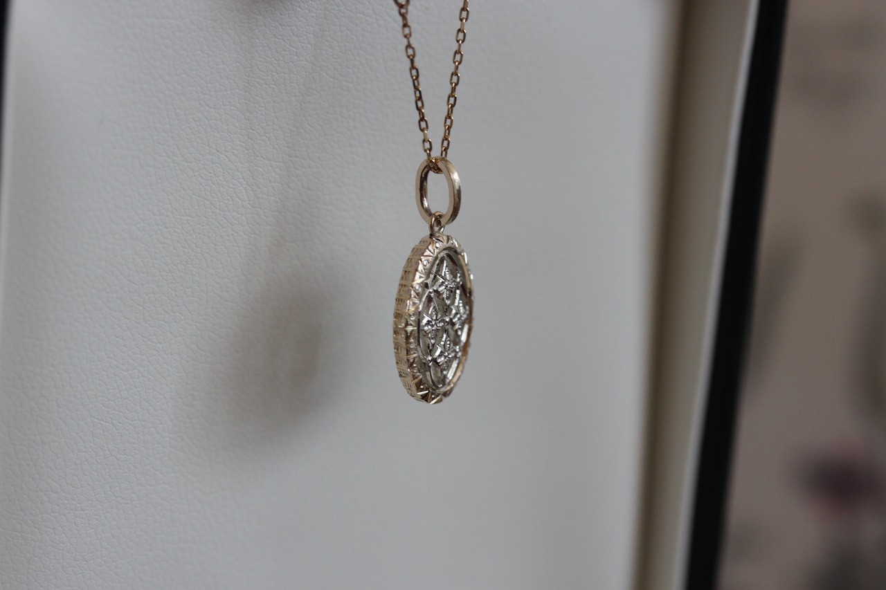 全体はK10YGの優しいゴールド、中の透かしの部分はシルバーに10%プラチナを混ぜたsilver900を使用しています。