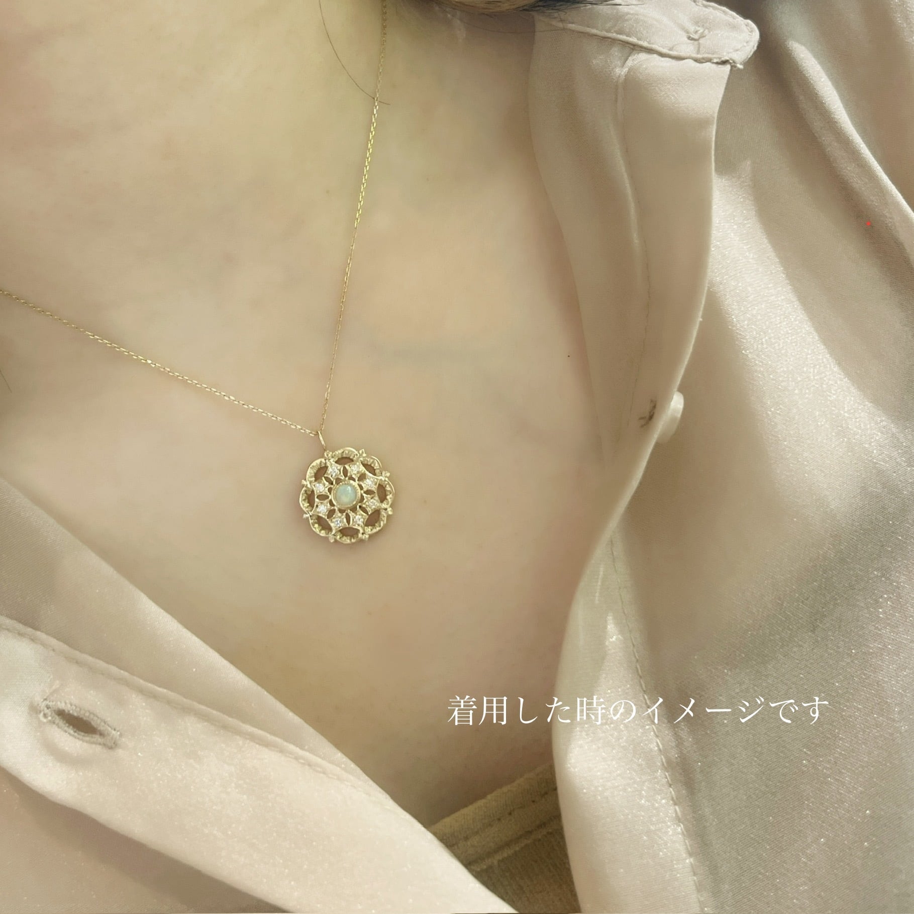 その幸福感と冬の灯りのような煌めきを小さなオーナメントのようなペンダントに込めました。